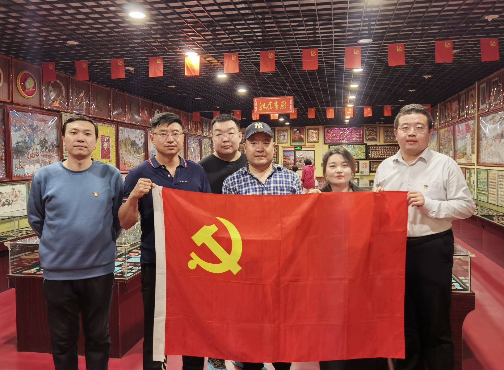 大泉山紅色紀(jì)念館外有毛主席親筆寫下的“看,大泉山變了樣子!”紀(jì)念館占地一千二百平方米,分為序廳、毛主席紀(jì)念章廳、毛主席著作廳、民俗用品廳、民族英雄廳、書法剪紙手工藝術(shù)品廳、英雄廳、大泉山民俗記憶廳等八個(gè)展廳,共四百余個(gè)柜臺(tái),其中的藏品由館長收藏積累了四十多年,每個(gè)相框均由老館長親手制作。這數(shù)萬件藏品記載著先輩們樸實(shí)無華的為民情懷和無私奉獻(xiàn)的革命精神,支部成員一行從一張張歷史圖片,一件件歷史實(shí)物中重溫了革命領(lǐng)袖毛主席帶領(lǐng)中國共產(chǎn)黨取得偉大勝利的光輝歷程。在歷史的群像中,革命先輩把自己的青春乃至生命無私地奉獻(xiàn)給國家,他們永不褪色的精神在這里深深扎根,生生不息。