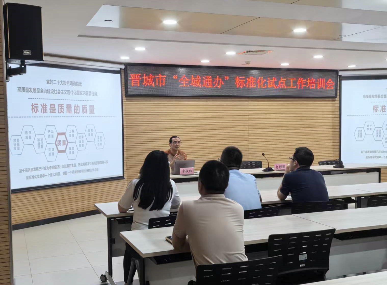2024年7月11日,晉城政務(wù)服務(wù)事項(xiàng)“全域通辦”標(biāo)準(zhǔn)化試點(diǎn)工作培訓(xùn)會(huì)議召開。晉城市政務(wù)服務(wù)中心主任白彬利、副主任王飛,市政務(wù)服務(wù)中心各入駐單位及各縣(市、區(qū))行政審批服務(wù)管理局負(fù)責(zé)政務(wù)服務(wù)標(biāo)準(zhǔn)化和政務(wù)服務(wù)事項(xiàng)“全域通辦”工作的分管領(lǐng)導(dǎo)及具體負(fù)責(zé)人參加會(huì)議。會(huì)議邀請(qǐng)山西省標(biāo)準(zhǔn)計(jì)量技術(shù)研究院高級(jí)工程師??〖t進(jìn)行專題培訓(xùn),白彬利作開場致辭。