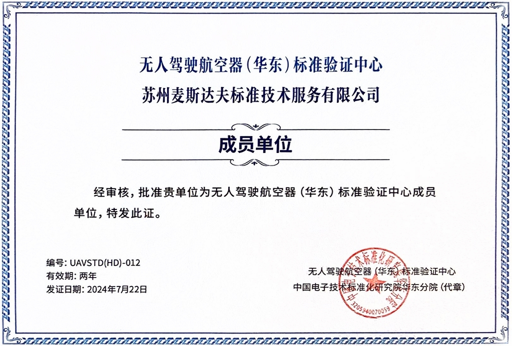 蘇州麥斯達(dá)夫入選無(wú)人駕駛航空器(華東)標(biāo)準(zhǔn)驗(yàn)證中心成員單位