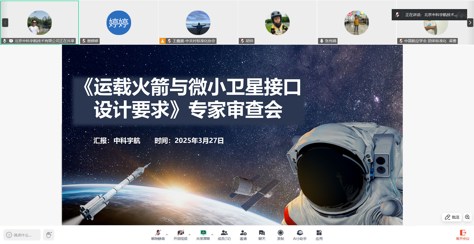 2025年3月27日,正值2025中關村論壇年會開幕之際,中關村標準化協(xié)會以線上會議形式組織召開《運載火箭與微小衛(wèi)星接口設計要求》等四項中關村標準審查會。來自中關村標準化協(xié)會、中國電子技術標準化研究院、中科寒武紀科技股份有限公司、中國航空學會、聯想(北京)有限公司的五名專家組成審查會專家組。會議由中關村標準化協(xié)會認定認證部主管王鑫邈主持。