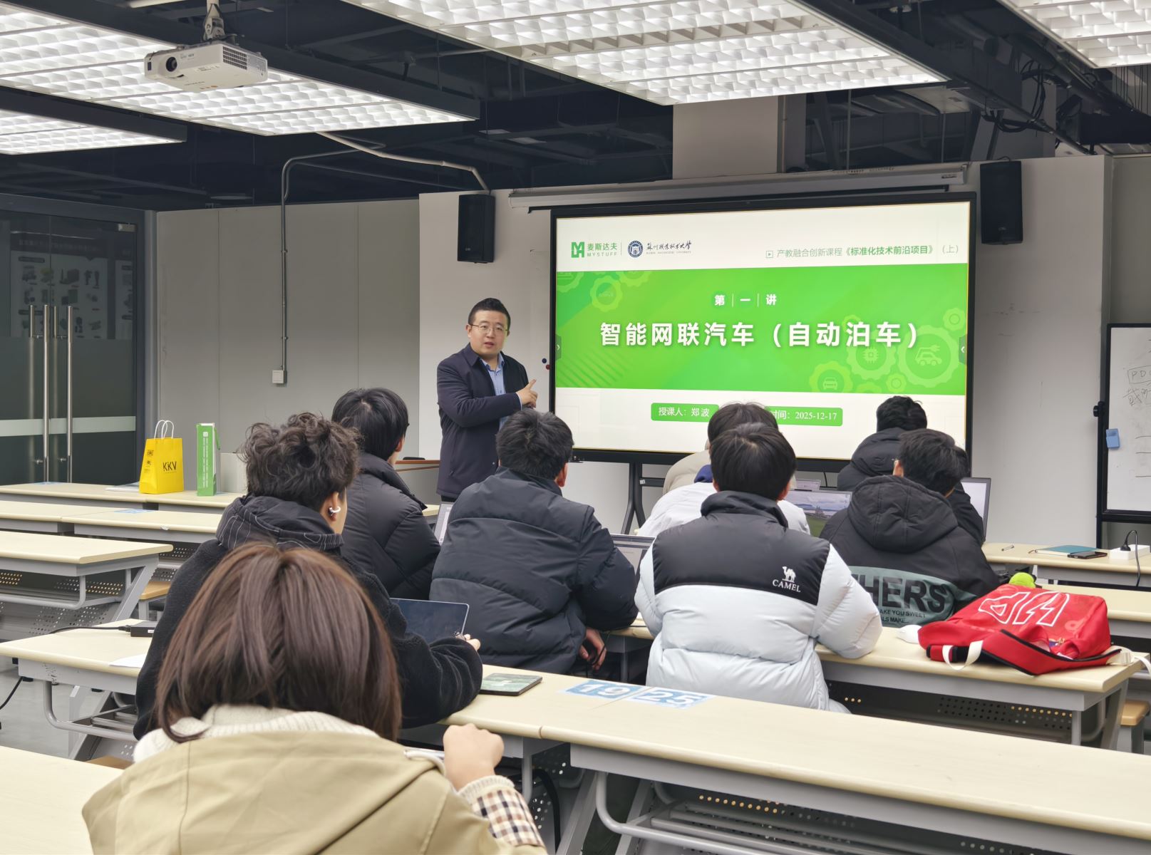 2025年12月17日,蘇州職業(yè)技術大學和麥斯達夫集團校企合作共建的微專業(yè)“汽車標準化技術”核心課程——《標準化技術前沿項目》正式開課。該課程由麥斯達夫集團創(chuàng)始人、首席執(zhí)行官鄭波擔任特聘教師,面向機電工程學院新能源汽車技術、機電一體化技術兩個專業(yè)的二年級學生授課。此次開課標志著雙方在汽車標準化領域的人才培養(yǎng)步入常態(tài)化、系統(tǒng)化教學新階段。