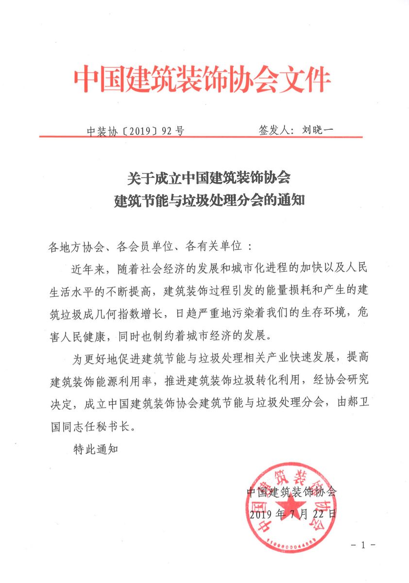 2019年7月22日,中國建筑裝飾協(xié)會建筑節(jié)能與垃圾處理分會獲批復(fù)成立,郝衛(wèi)國任秘書長。麥斯達(dá)夫標(biāo)準(zhǔn)化事務(wù)所是該分會的標(biāo)準(zhǔn)化技術(shù)支撐機(jī)構(gòu)。