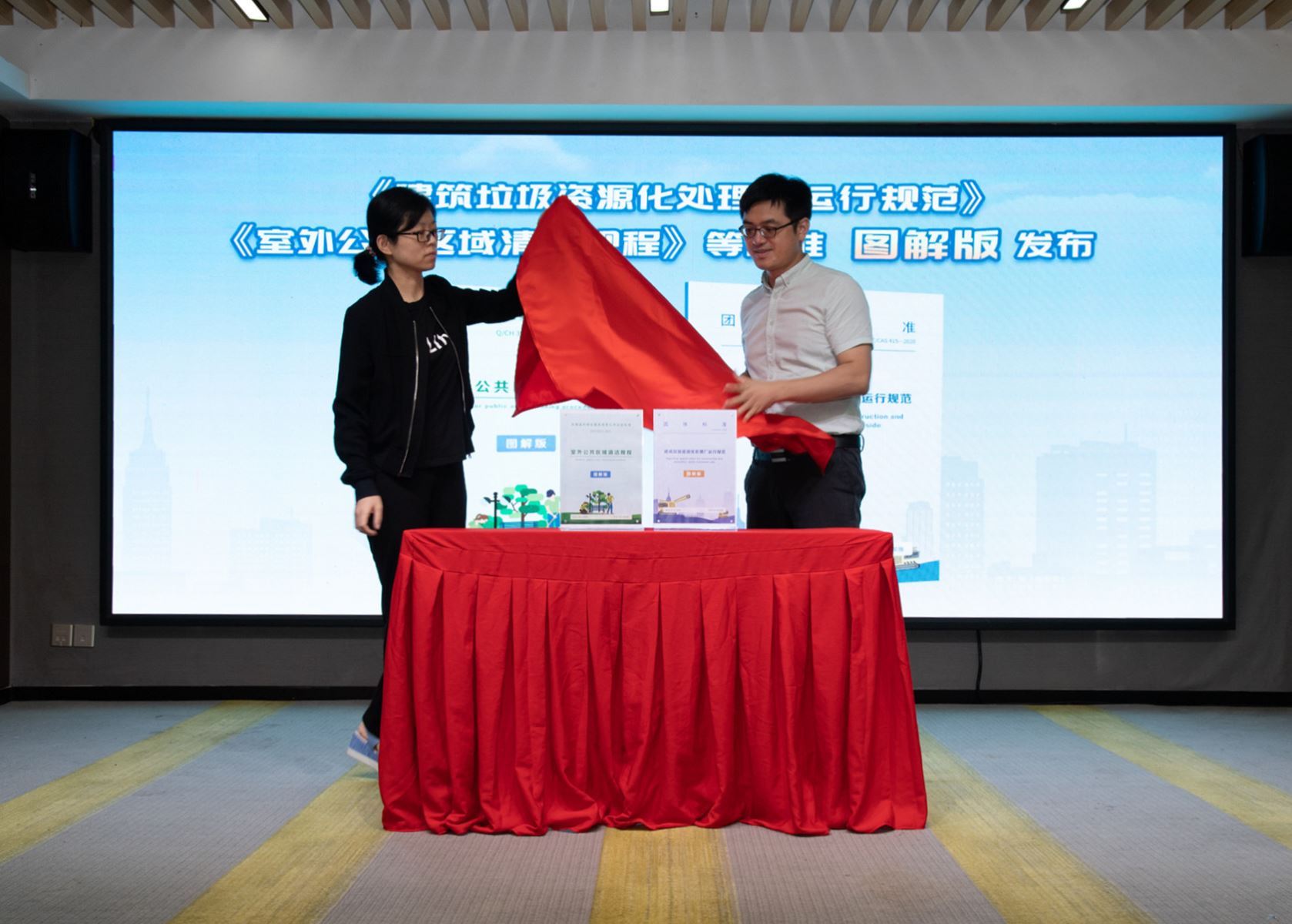 國家標(biāo)準(zhǔn)技術(shù)審評中心李實和麥斯達(dá)夫聯(lián)合創(chuàng)始人、深圳公司總經(jīng)理高武龍為《建筑垃圾資源化處理廠運行規(guī)范》《室外公共區(qū)域清潔規(guī)程》兩項標(biāo)準(zhǔn)圖解版揭幕。