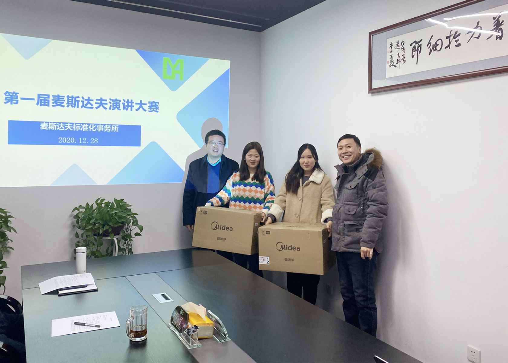 2020年12月28日,第一屆麥斯達夫演講大賽在北京總部會議室成功舉辦。比賽由首席執(zhí)行官、黨支部書記鄭波,首席運營官、工會主席王超,寧波公司總經(jīng)理王振凱,黨建指導(dǎo)員郝宏強四人擔任評委。設(shè)一等獎一名、二等獎兩名、三等獎三名,比賽共10名選手參加。