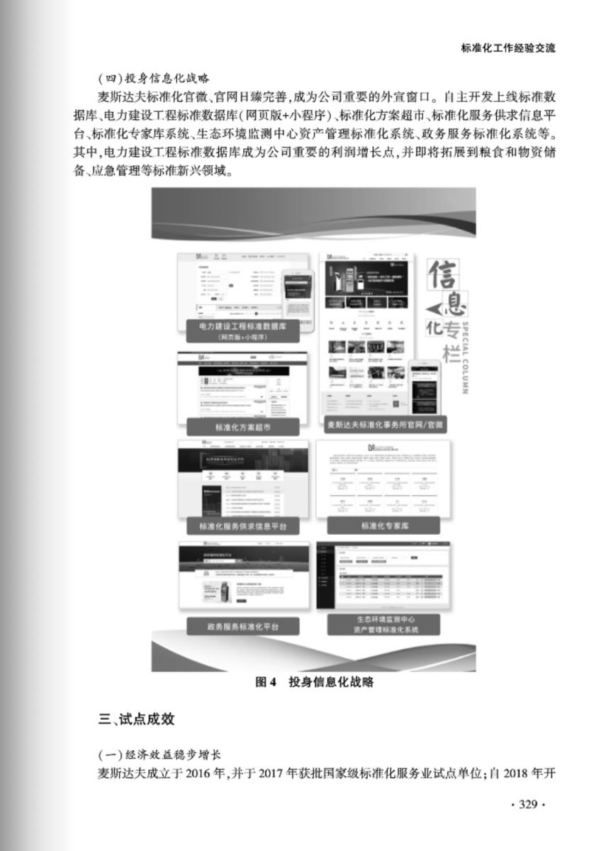 “聚力科技創(chuàng)新 以市場(chǎng)化引領(lǐng)標(biāo)準(zhǔn)化服務(wù)業(yè)高質(zhì)量發(fā)展”以麥斯達(dá)夫高分通過(guò)標(biāo)準(zhǔn)化服務(wù)業(yè)試點(diǎn)驗(yàn)收為基礎(chǔ),由試點(diǎn)簡(jiǎn)介、試點(diǎn)建設(shè)、試點(diǎn)成效、承擔(dān)單位簡(jiǎn)介四部分內(nèi)容組成。全文以圖文并茂的形式充分展示了麥斯達(dá)夫標(biāo)準(zhǔn)化服務(wù)業(yè)試點(diǎn)經(jīng)驗(yàn)和公司發(fā)展路徑以及試點(diǎn)期間取得的顯著經(jīng)濟(jì)、社會(huì)效益等內(nèi)容,標(biāo)志著麥斯達(dá)夫標(biāo)準(zhǔn)化事務(wù)所已經(jīng)在標(biāo)準(zhǔn)化服務(wù)業(yè)中成為佼佼者,也必然引領(lǐng)北京市乃至全國(guó)標(biāo)準(zhǔn)化服務(wù)業(yè)的發(fā)展。
