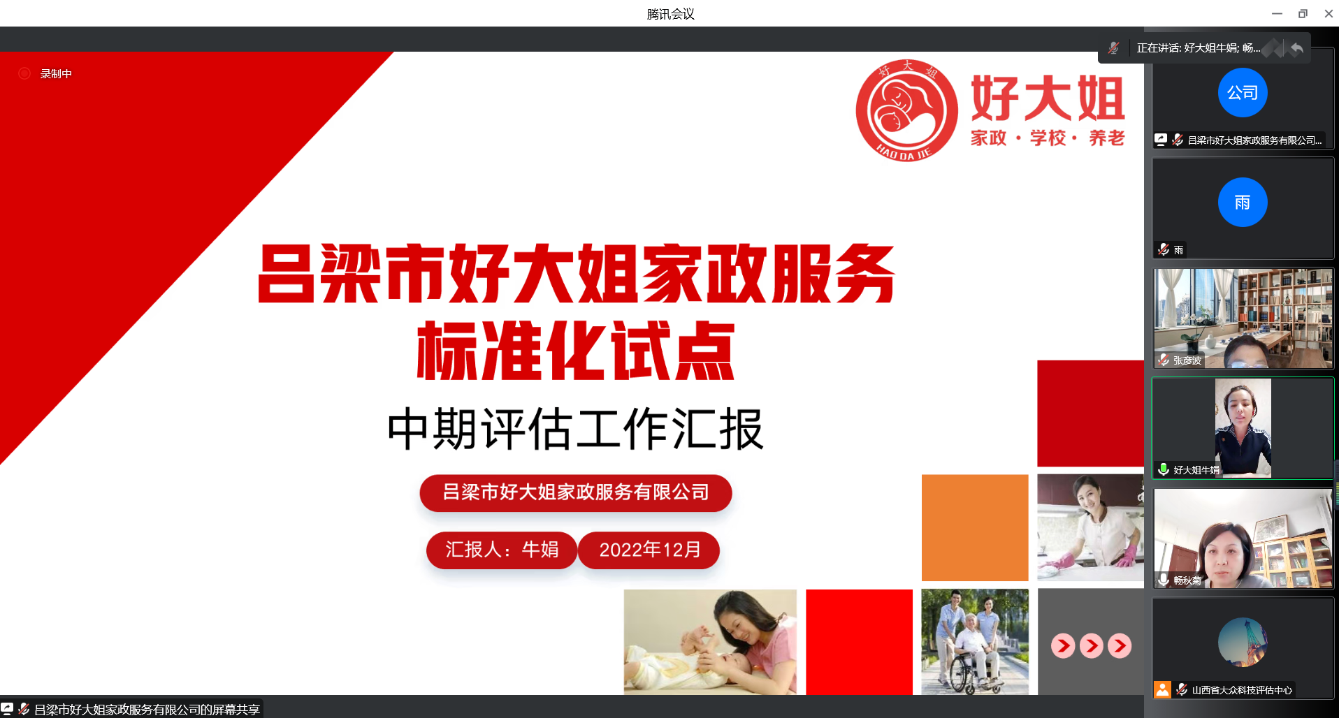 麥斯達(dá)夫標(biāo)準(zhǔn)化作為呂梁市好大姐家政服務(wù)標(biāo)準(zhǔn)化試點(diǎn)的技術(shù)支撐機(jī)構(gòu),全流程輔導(dǎo)了試點(diǎn)創(chuàng)建工作,項(xiàng)目經(jīng)理史姣娜參加會(huì)議。