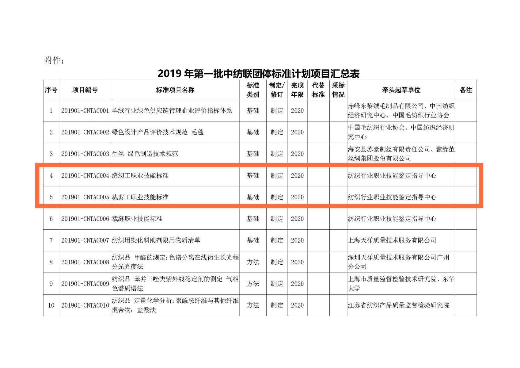 根據(jù)《關于下達2019 年第一批中紡聯(lián)團體標準計劃項目的通知》(中紡聯(lián)標委函〔2019〕5 號)要求,“縫紉工職業(yè)技能標準”、“裁剪工職業(yè)技能標準”“裁縫職業(yè)技能標準”三項中國紡織工業(yè)聯(lián)合會團體標準的完成時限為2020年。