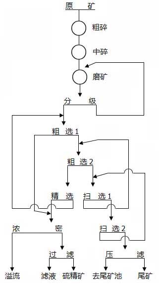 浮選流程采用一次粗選,一次精選,兩次掃選,保證精礦品位的同時提高硫鐵礦浮選的綜合回收率。